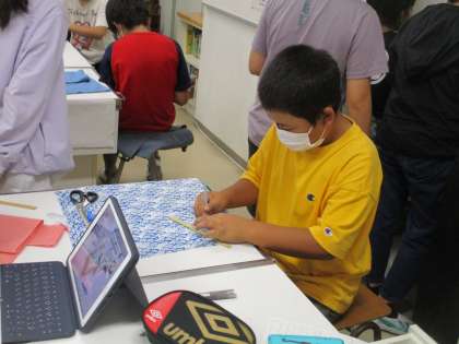 今日は一枚の布を裁ち(切り)、下糸の色を決めていました。自分の想いや願いが形になると生活が楽しくなりますし、豊かになります。6年生の作品を期待します。