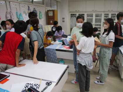 6年生家庭科「思いを形にして 生活を豊かに」では、一枚の布から作品をつくります。