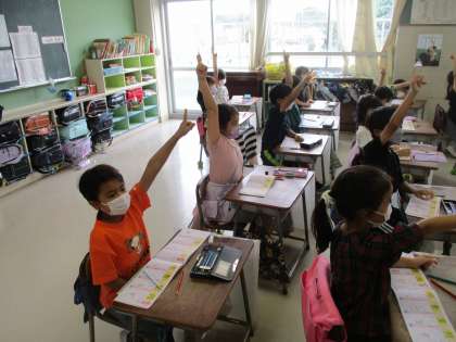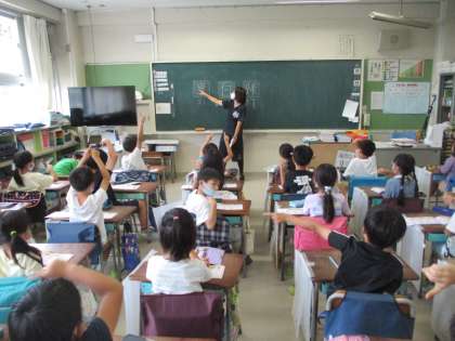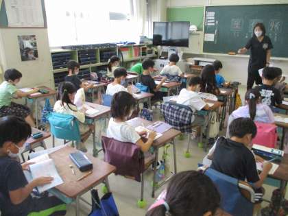 2年生の教室では新しい漢字の学習をしていました。今日は「里、何、帰」の3文字。