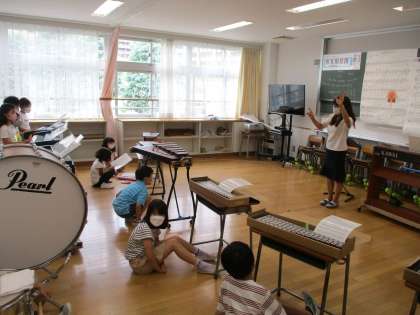 2年生の音楽の合奏を聞かせていただきました。とてもリズムのいい音楽です。2年生は楽しく練習していました。ノリノリの合奏、楽しみにしています。