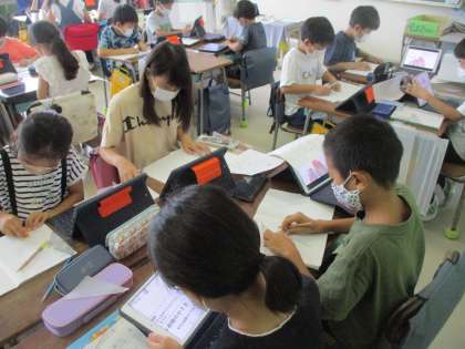 4年生の算数では「垂直と平行」の学習に取り組んでいました。三角定規を使って垂直、平行をかきました。図形の学習は「丁寧さ」が求められます。タブレットを使っても復習ができます。ご家庭でもチャレンジしてみてください。
