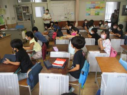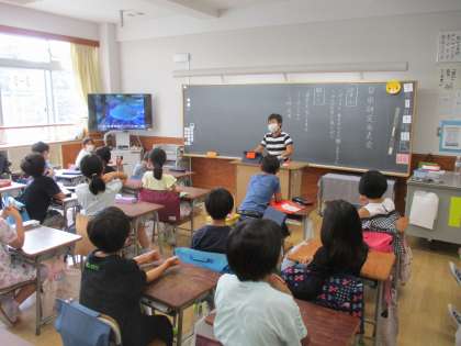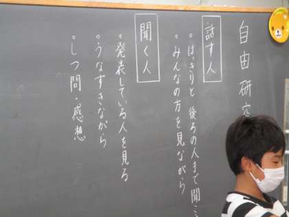 3年生を参観しました。夏休みに取り組んだ自由研究を発表しました。はっきりと、後ろの人に伝わる声で話す。みんなの方を見ながら話す。など、学習のめあてをもって授業に臨みました。皆さんの力作に感心しました。