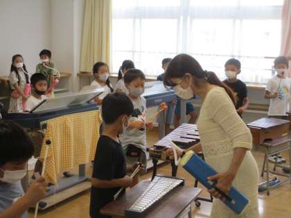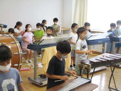 2年生の音楽合奏「おどれサンバ」の様子です。一人一人の子どもたちはノリノリです。