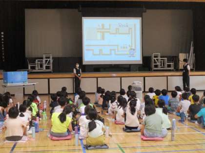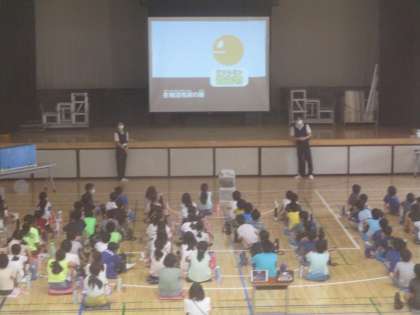 安全でおいしい水が届くまでの流れを、映像や実験を通して学びました。「蛇口から直接水を飲む」ことができる国は限られており、日本が誇る水道文化です。水道キャラバンは、子どもたちに水道水に対する理解や関心を高めるための出前授業です。