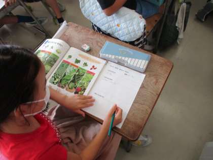 生活科で2学期に育てる野菜について一人一人考えていました。はつかだいこん、ほうれんそう、ブロッコリー、こまつな、かぶ、にんじんの中から選び、育ててみたい理由を学習カードに記入しました。大切に育ててほしいと思います。