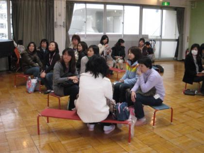 この時期の年長の学級懇談会は、小学校へ入学するに当たって、先輩のお母さんが初めて小学生に入学するお母さんの質問を受けて答えます。初めて入学するお子さんをもつお母さんは不安です。先輩のお母さんが優しく教えてくれます。その中に小学校の校長も入ってお話します。いい懇談会でした。