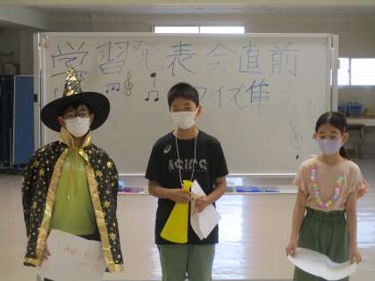 今朝の集会は「学習発表会集会」を行いました。内容は学習発表会に関わるクイズです。各学年の合唱曲や合奏曲の題名を当てるクイズでした。集会委員の皆さんは、いつも全校を楽しませてくれています。今日も楽しかったよ、ありがとう!