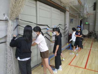 6年生は学習発表会を盛り上げるため、様々な活動を行っています。その一つが「装飾係」体育館を飾り付けてくれました。ありがとう!