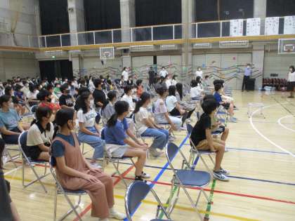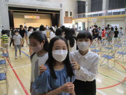 明日の保護者鑑賞日に向けて6年生が会場準備を行ってくれました。会場も整いました。