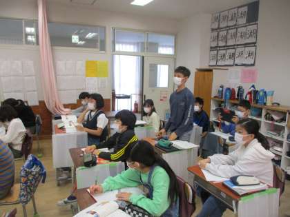 6年生の国語で俳句や短歌をつくりました。その前に「秋探し」です。紅葉、栗、金木犀、秋刀魚、秋桜、まつたけ、銀杏、、、、。秋にふさわしい言葉を発表し合いました。子どもたちの作る短歌や俳句、どのようなものになるのでしょうか?