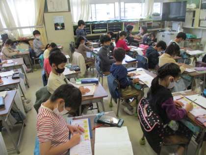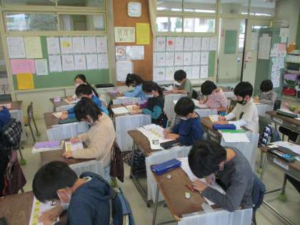 「漢字学習はよい姿勢から!」当たり前のことです。また、学習の基本です。2年生の子どもたちは、姿勢よく学習に取り組んでいました。きっと、確実に身に付きますよ。この調子で頑張ってください。