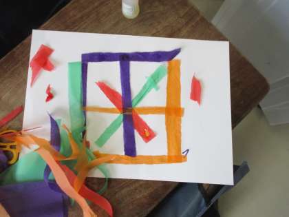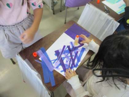 2年生の図工を参観しました。今日は、お花紙をならべて、重ねて、工夫してつくりました。楽しく活動ができました。