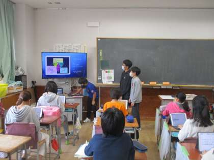 6年生の総合では、グループごとに調べた職業について発表し合いました。6年生の子どもたちは、スポーツや声優、看護師など様々な職業を調べてきました。今日は、発表会でした。どのグループも分かりやすく発表することができました。
