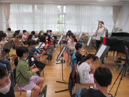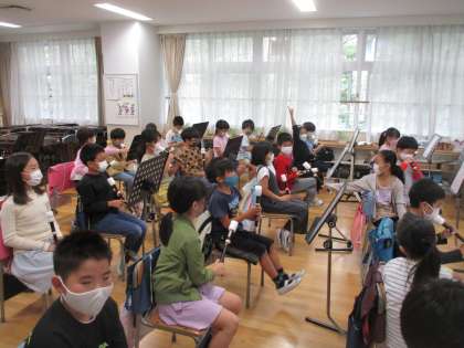今日の音楽の時間はリコーダー演奏「雲のなみだ」に挑戦しました。「ラ」「ド」などを重点的に練習していました。