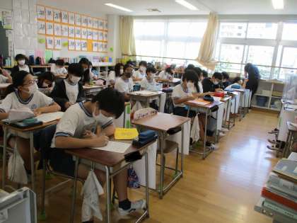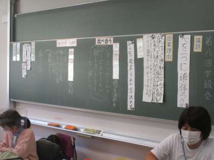 6年生の授業を参観しました。今日の議題は「心を一つに頑張ろう」。運動会を前にクラスの仲間の心を合わせる会になればいいですね!一人一人意見を言って、きめていきました。すてきな6年生です。
