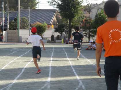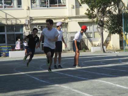 教員も参加し、女子リレーチームと男子リレーチームと走りました。