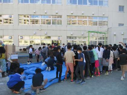 総合的な学習の時間で5年生が育ててきた「稲の脱穀」を行いました。今回も地域の方々のご協力で行いました。今では脱穀は電気製品を使います。しかし、昔は足踏み脱穀機を使っていました。今日は郷土歴史研究会のご厚意で大昔の足踏み脱穀機で作業をしました。昔の方々の知恵や工夫を感じる学習となりました。