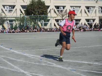 3,4年生の中学年リレーが復活しました。パトンバスも上手でした。迫力あるリレー、胸が熱くなりました。
