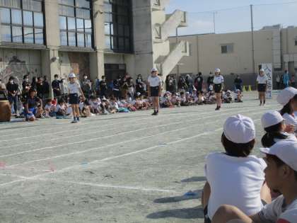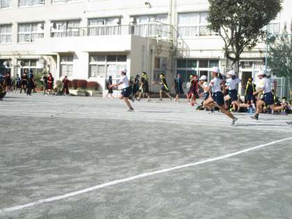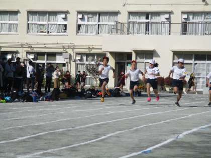 6年生の徒競走です。あっという間に走り終えてしまいます。私も6年生が走っている間に願いを込めました。
