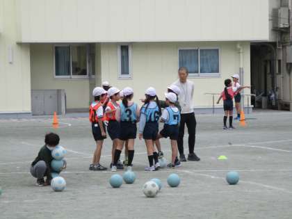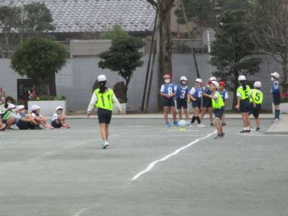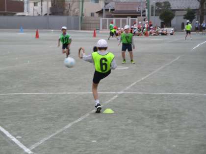 3年生の体育を見学しました。キックベースに取り組んでいます。ボールを蹴りますがサッカーではありません。ボールを蹴ったら野球のように塁に走ります。子どもたちは寒さに負けずに楽しんで活動しました。