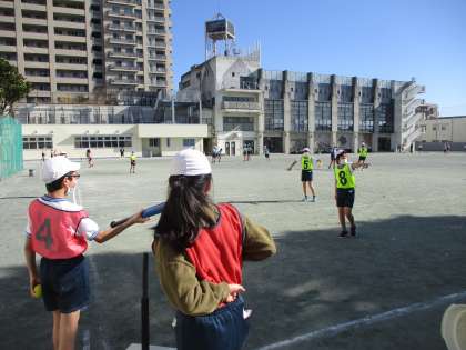 12月8日(木)6年生体育「ティーボール」