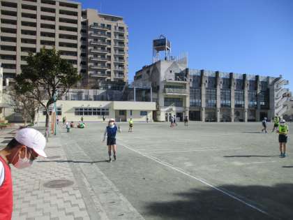 6年生の体育「ティーボール」の様子です。安全に気を付けてゲームをしています。
