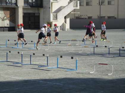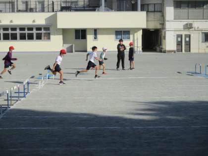 4年生の体育を参観しました。ハードル走に挑戦。決められた歩幅で走ること、リズミカルに走ることをめあてに取り組みました。今日は穏やかで、日差しの暖かさを感じる一日でした。