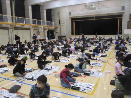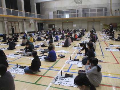 4年生の書き初めの様子です。「美しい空」を書きました。子どもたちの力強い字がすてきでした。