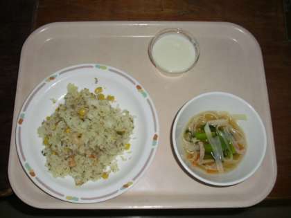 今日から1週間は、給食週間です。戦後、日本で給食が始まったことを記念して作られました。そこで、今日から、メニューを工夫しています。今日のメニューは、「ナシゴレンとアジアンスープ」です。インドやマレーシアの料理です。平成の時代は、国際色豊かなメニューになりました。