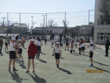 なわとび週間の様子です。たてわり班で活動をしました。1〜6年生が集まって楽しく過ごしていました。