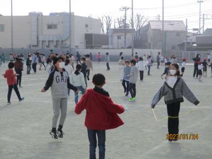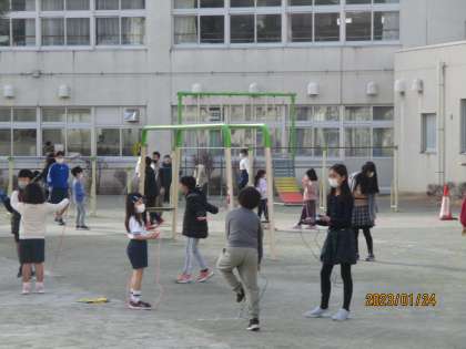 日差しのぬくもりを感じる一日となりました。なわとびチャレンジ期間も残すところ2日となりました。たてわり班での活動、とても楽しく活動しています。
