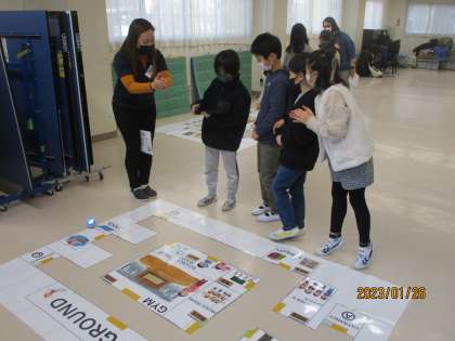 買い物コーナー、旅行会社コーナー、プログラミングゲームコーナーの3つに分かれて体験学習を行いました。子どもたちは店員さん、お客さんに分かれて英語でのやりとりを楽しんでいました。楽しい時間をありがとうございました。
