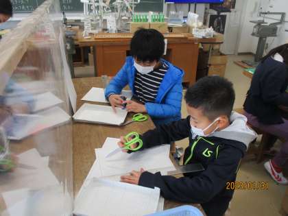 5年生の図工の様子です。ビー玉大冒険、とても楽しいそうなネーミングです。子どもたちは、コースの作り方や組み合わせを工夫して作っています。楽しい作品となるよう、期待しています。