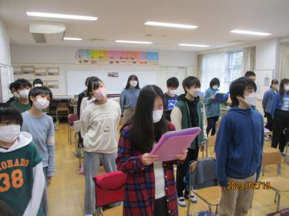 2階東階段を歩いていると、美しい声が聞こえてきました。音楽室からです。6年生が卒業式で歌う曲を練習していました。「最後のチャイム」いい曲名です。6年生の子どもたちにとって最後の授業、最後のチャイムは卒業式です。登校日数も30日を切りました。充実した小学校生活を送ってほしいと思います。