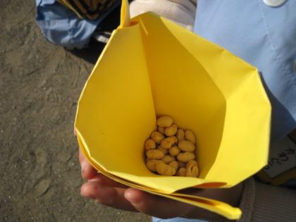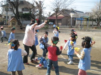 今日は、節分です。幼稚園では、豆まきをしました。年少さんは作ったお面をかぶって、「鬼は外」と言って豆をまきました。これで、幼稚園には悪い鬼はいなくなりました。「節分」、日本の伝統的な行事です。受け継いでいかねばならない伝統を子どもたちは大切にしています。ご家庭でも行いましたか。