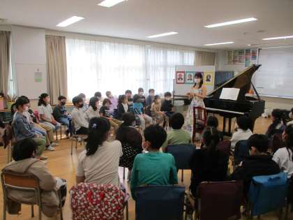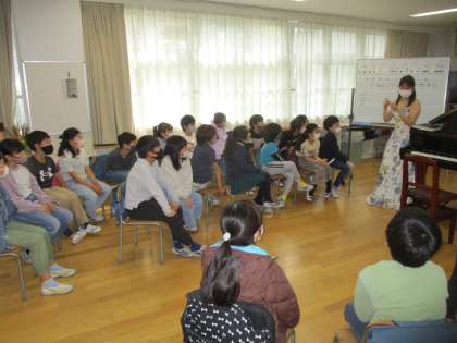 3年生の音楽で講師に柴田かんな先生を講師に招き、ピアノ鑑賞教室を行いました。とてもすてきな演奏でした。ありがとうございました。また、生の音楽に触れる機会を調整していただきました「ボランティアおたまじゃくしさん」ありがとうございました。