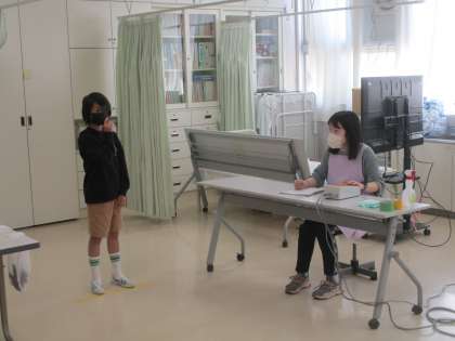 視力検査も始まりました。事前に教室で簡単な検査を行い、その後が保健室で詳しい検査をしました。