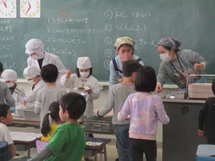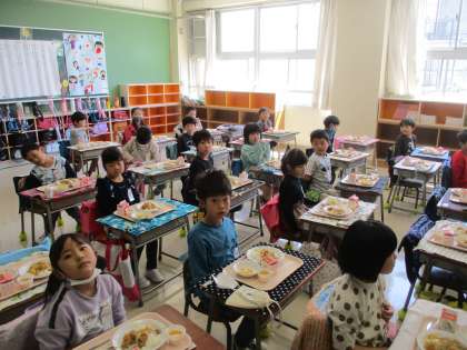 今日から給食が始まりました。1年生にとって給食の準備・片付けはとても大変です。おひさまボランティアの皆様のご協力のおかげで、スムーズに準備ができました。ありがとうございます。