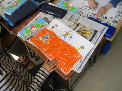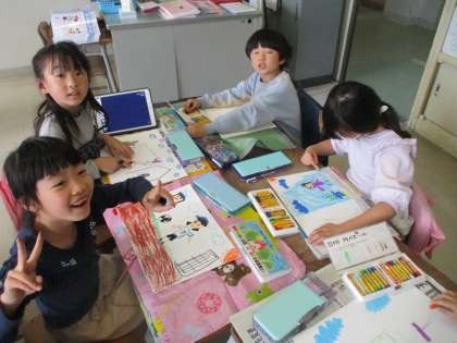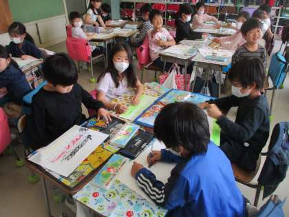 2年生の図工では「すきなこと なあに」に取り組んでいます。色や形を工夫してすきなことをしている自分を描くことができました。2年生の子どもたち、一生懸命に取り組んでいました。