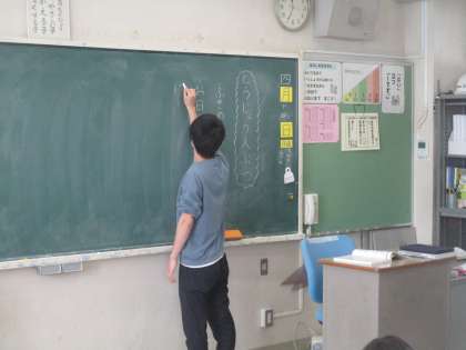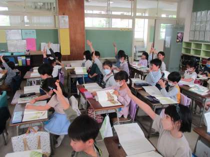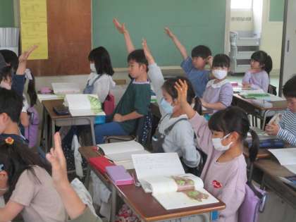 2年生の国語「ふきのとう」の学習風景です。登場人物を問う場面では、多くの子どもたちが手を挙げて発表しました。2年生の学ぶ意欲に感心しました。