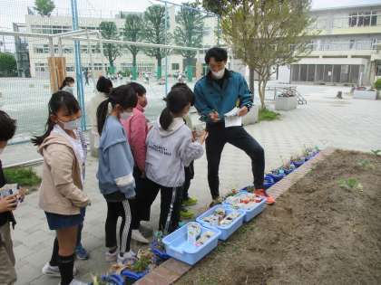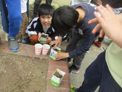 4年生の理科では「ヘチマの種」を植えました。たった一粒の種で大きなヘチマに育つことを学んでほしいです。