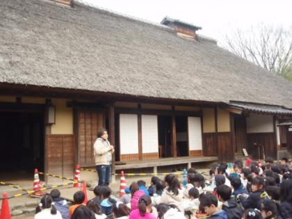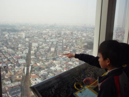 九品仏の次は、三軒茶屋にあるキャロットタワーの展望台に行きました。「FMせたがや」の放送はしていませんでしたが、素晴らしい眺めに、子どもたちは大喜びでした。最後は、次大夫堀公園。昔の家屋や道具に触れ、いろりのにおいをかぎ、井戸水をくみ上げる体験をしました。