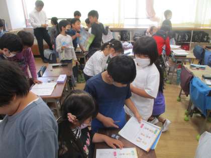 3年生の外国語活動を参観しました。今日の授業では「元気ですか?」「はい、元気です!」を英語で表現し合いました。そして、互いに教科書にサインをする活動をしました。みんな生き生きと取り組むことができました。