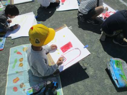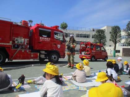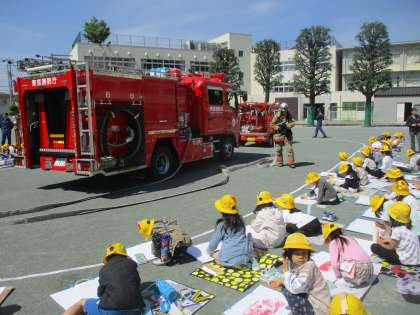 1年生の消防写生会を行いました。子どもたちは消防車に興味津々の様子でした。そして、個性あふれる消防車を描くことができました。天気もよく青空のもと、赤の消防車が輝いて見えました。