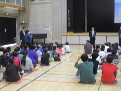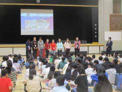 本日、塚戸小にモンゴル国オルホン県から教育視察にいらっしゃいました。2校時に6年生の学級会をご覧になり、3校時は校舎内を見学しいろいろな学年の授業の様子を視察されました。4校時は6年生が体育館に集まりモンゴルの学校生活や年中行事についての話を聞きました。給食も一緒に摂り、お帰りの際に「子どもたちの表情が素晴らしい、よい学校ですね!」と言われて帰られました。
