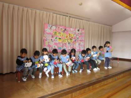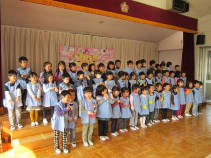 2月の誕生会でした。お誕生日の人は、11人です。おめでとう。お楽しみは、年少さんの歌の出し物でした。とえも上手に歌えました。成長しましたね。