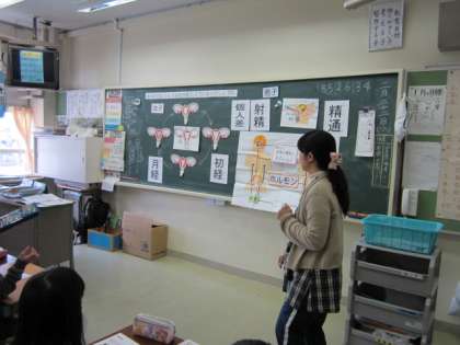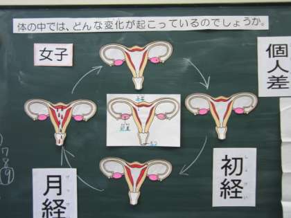 4年生は、体の第二次成長について養護教諭とTTで授業を進めています。教材は、養護教諭が工夫しながら作りました。体の成長は、4年生の時期からしっかり学んでおくことが必要です。子供たちは、関心をもって勉強していました。