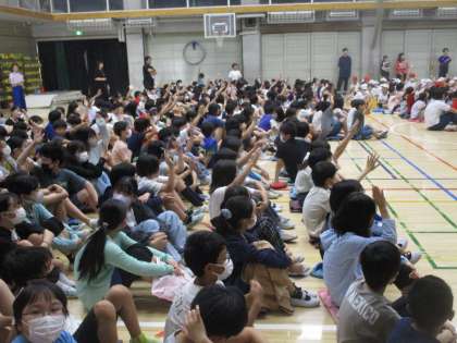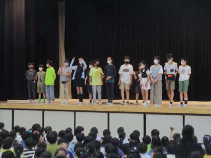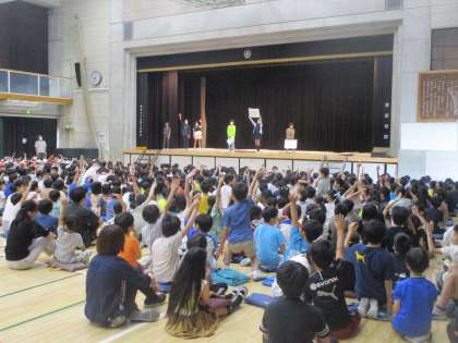 今朝は集会委員によるゲーム集会が行われました。学校を紹介するクイズを行いました。塚戸小学校の先生の人数は?クラス数は?1年生の人数は?わかっているようでわからないクイズで大変盛り上がりました。集会委員会の皆さん、ありがとう。これからも楽しい集会をお願いします。