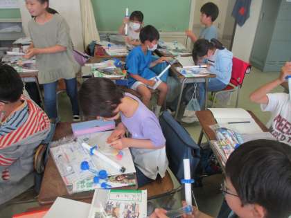 4年生の理科の様子です。今日は、空気を押すと体積は縮むのだろうか?という実験でした。空気鉄砲を使って、閉じ込めた空気に力を加えて手ごたえを感じたり、変化を調べたりしました。子どもたちは、楽しんで学習していました。
