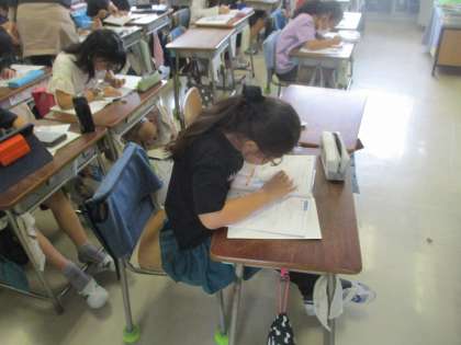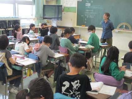 4年生算数の授業の様子です。分度器の使い方、角度のはかり方、決められた角度を描くことなど、丁寧に取り組んでいました。真剣に学習に向かう姿勢に感心しました。